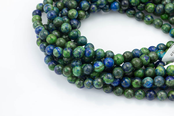 Natural Malachite Azurite Beads Grade AAA Round 4mm, 6mm, 8mm, 10mm, 12mm, 14mm- Full 15.5 Inch strand AAA Quality Smooth Gemstone Beads