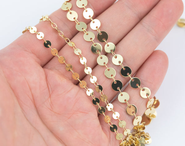 14k Gold PVD Ion Plated Coin Sequin Chain Chains 4mm 6mm - Tarnish Resistant - Sold by the yard