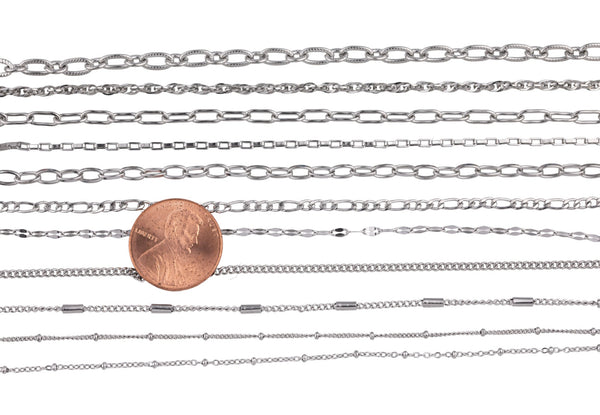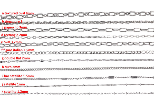 Dainty Stainless Steel Chain Oval Satellite Figaro Italian Curb Paperclip Chain for Permanent Jewelry Wholesale by the Yard