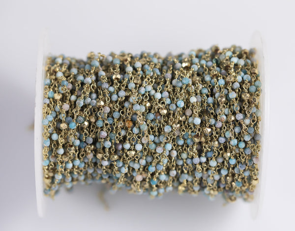Natural Gemstone Beaded Chain Labradorite Spinel Rhodonite Aquamarine Yellow Opal Garnet Turquoise Hessonite Aquamarine 2mm sold by foot