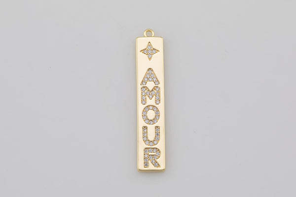 1 pc 18k Amour Tag Dogtag Charm CZ, Pendant- 7x57mm