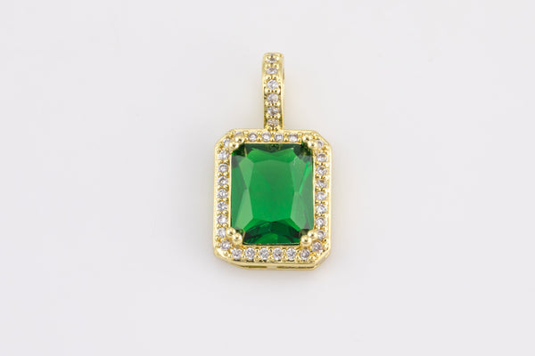 1 pc 18k Gold Emerald Shape Charms- Assorted Colors- 12x20mm