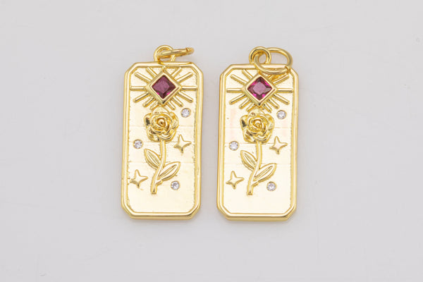 1 pc 18k Gold Micro Pave Flower Rose Tag Pendant , Heart Charms, Lock Necklace Charms, CZ Pave- 10x20mm c202