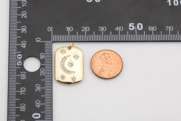 1 pc Dainty STARBURST Disc Pendant #2 12x25mm - 18k Gold Fill CZ North Star Charm, Moon Star, Celestial Pendant, Micro Pave Charm