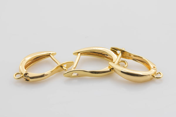2 pairs 19x13mm Gold Huggie Earring one touch w/ open link 14K gold Earring Nickel and Lead free, Lever back earring making Supply Huggies