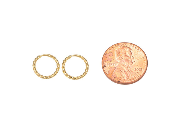 2 pcs 18kt Gold One Touch Lever Beaded Rounded Hoop Simple round hoop earring, 12mm Huggie , Earring Gift for Minimalist Huggies