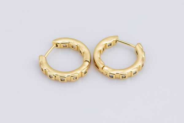 24mm 18kt Gold Big Hoop Earring with Geometric CZ Bezel Set- 1 pair per order