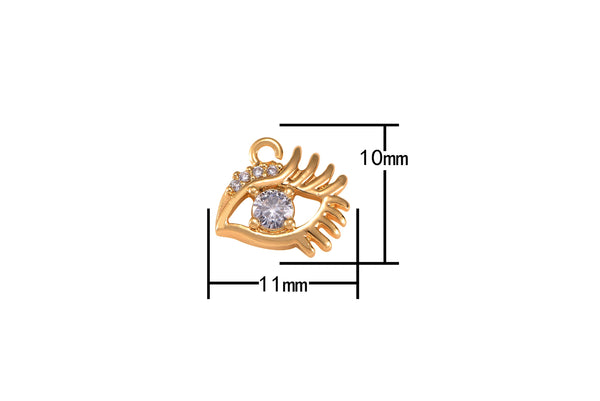 2pc 18k Gold Coin Evil Eye Charm Diamond CZ Drop Charm Cubic Protector Pendant Tiny Lucky Dainty Necklace - 10mm- 2 pcs per order