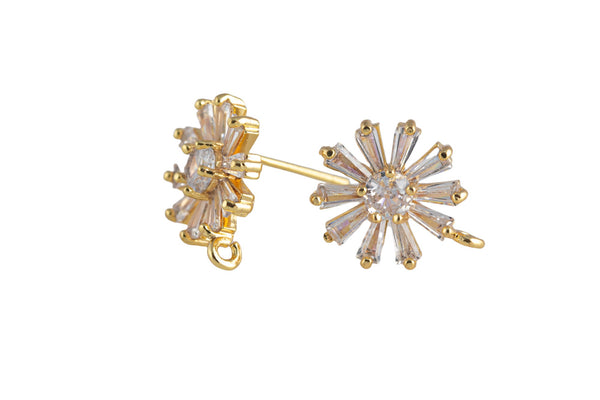 2pc 18K Gold Earrings Stud Flower CZ Earrings- 2PC per order -12mm