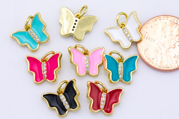 4 pcs Dainty Enamel Charm Butterfly Gold 14k Gold Charm- 12mm