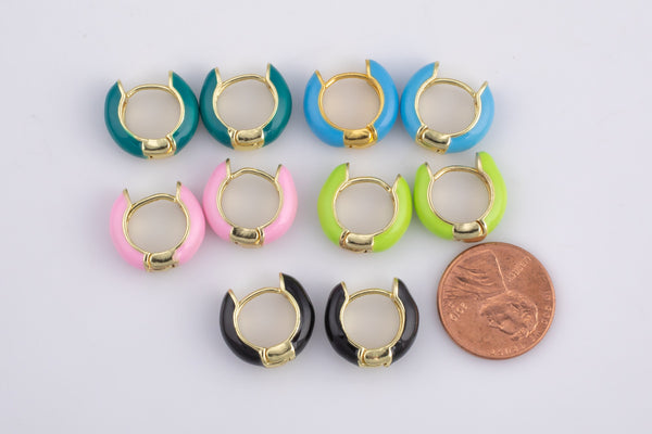 Colorful Enamel Huggie Hoop Enamel Earring - 15mm- 5mm thick Huggies - 1 pair per order