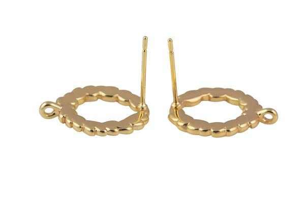 Gold Earrings - Wheat Reef Stud with Gold-14mm- With Loop Wreath Earring