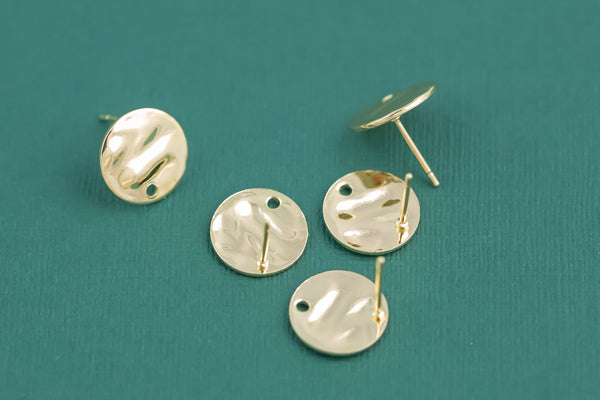 Gold Plated Brass Brushed Gold Coin 13mm Earring Post -Brass earring shape connector Brass earring findings jewelry supply sx1