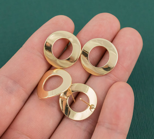 Gold plated brass earring post Circle Ring Curved 18mm Gold Brass earring charms shape earring pendant earring findings jewelry supply sx1