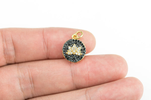 Mala Lotus CZ Diamond Pave Charm / Pendant 12mm - gold or gunmetal plating