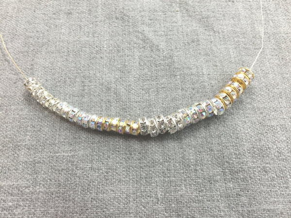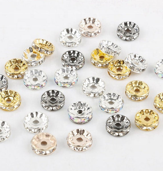 This listing is for 100 pieces of rhinestone spacers. The crystals are very shiny and bright. 4mm and 5mm ones cost more because they are smaller and harder to make. The most popular sizes are 6mm and 8mm.