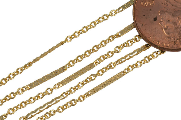 1.7mm Gold-filled Satellite Hammered Bar Chain by the Foot- Wholesale- 11mm Hammered Section