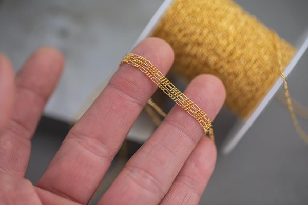 Figaro 1.5mm Sterling Silver or Gold Filled Figaro Chain 3 + 1 - Classic Chain - Wholesale Chain for Permanent Jewelry Supply - USA made
