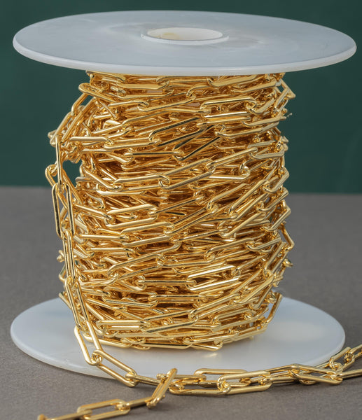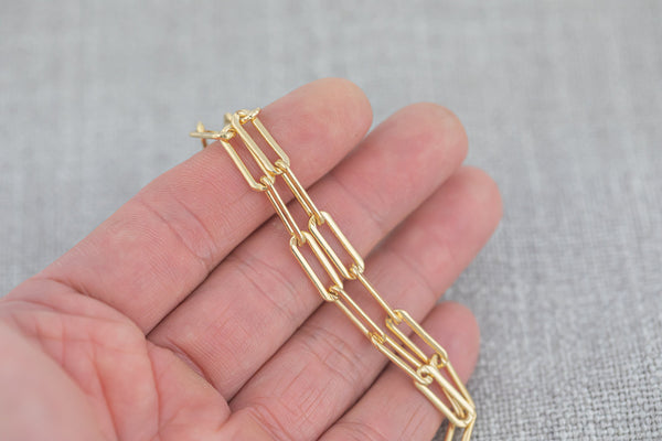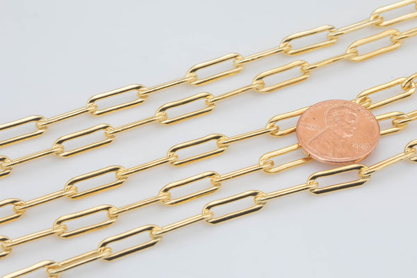 Gold Filled Flat Tubed Chain, 5x15mm links, USA Made , Wholesale, USA Made, Chain by foot- Chunky Paper Clip Chain Permanent Jewelry Chain