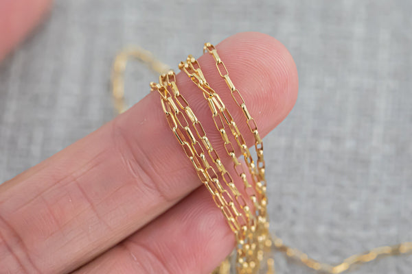 Gold Filled Elongated Oval Rolo Chain 1.3x3mm - Dainty Paperclip Style Wholesale Chains for Permanent Jewelry - USA made