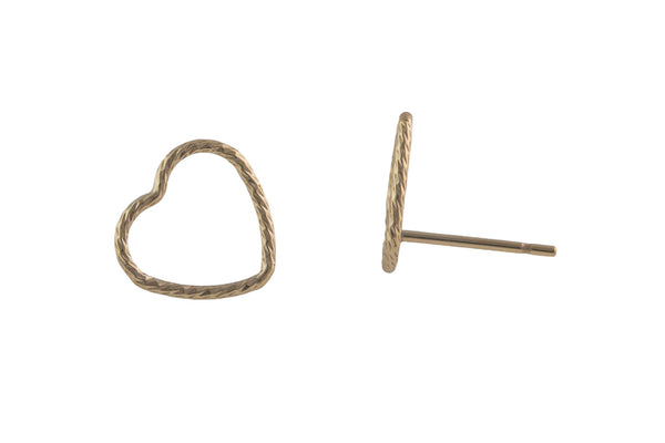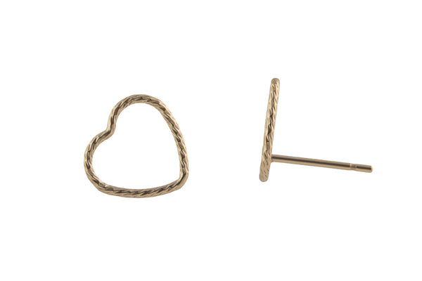 Gold Filled Sparkly Wire Heart Earring Stud- 14/20 Gold Filled- USA Product- 10mm Stud