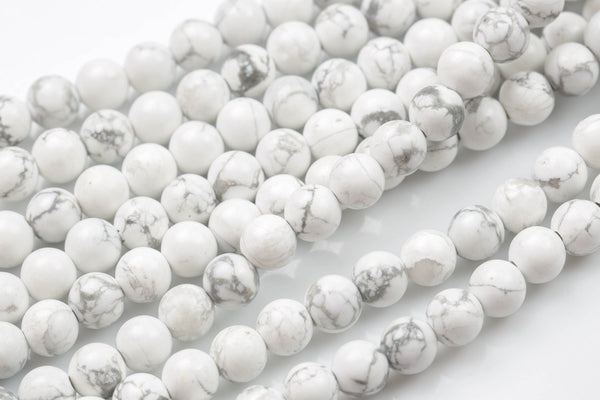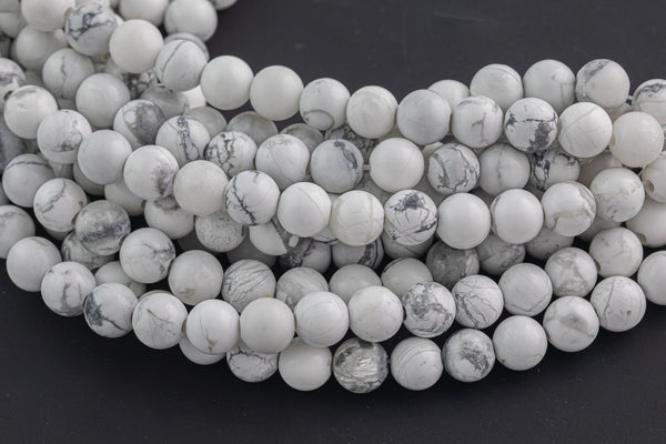 LARGE-HOLE beads!!! 8mm or 10mm smooth-finished round. 2mm hole. 7-8" strands. Smooth Howlite. Big Hole Beads