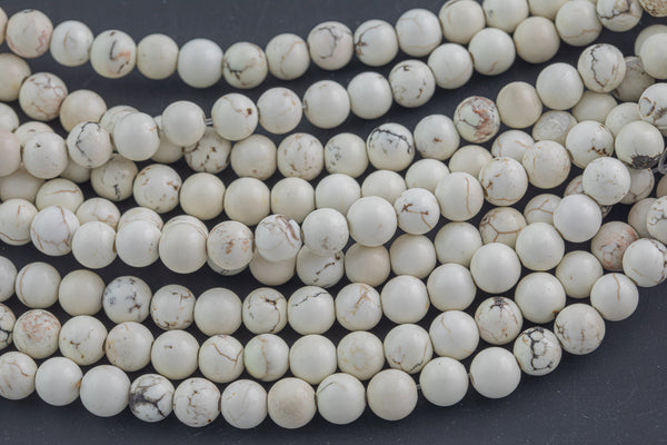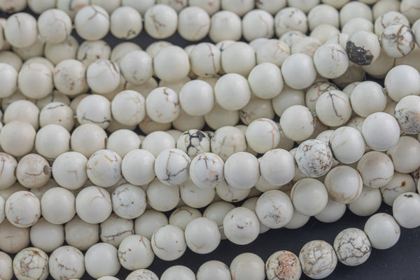 LARGE-HOLE beads!!! 8mm or 10mm Smooth round. 2mm hole. 7-8" strands. White Turquoise. Big Hole Beads