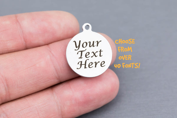 We will center your texts unless you specifically ask us not to. We will also sometimes format your longer sentences for you so that they will fit better onto the charm and so that they will be easier to see. If you do not want us to format your text positional-wise in any way shape or form you must specify this to us.