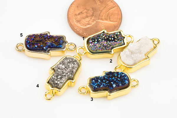 Hamsa Hand Druzy Connector- 10x12mm 1pc