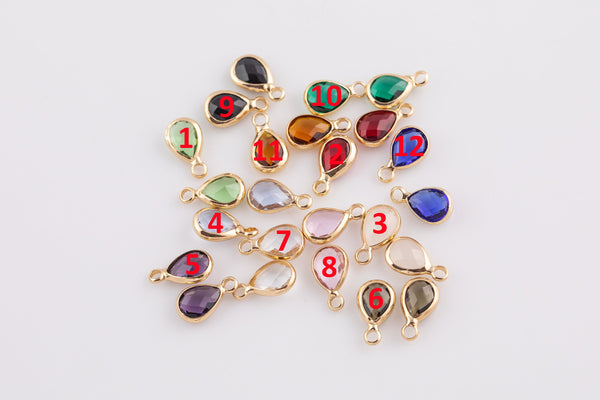 Petite tiny crystal charms teardrop 6*8mm. Bezzeled with gold plated copper / brass.