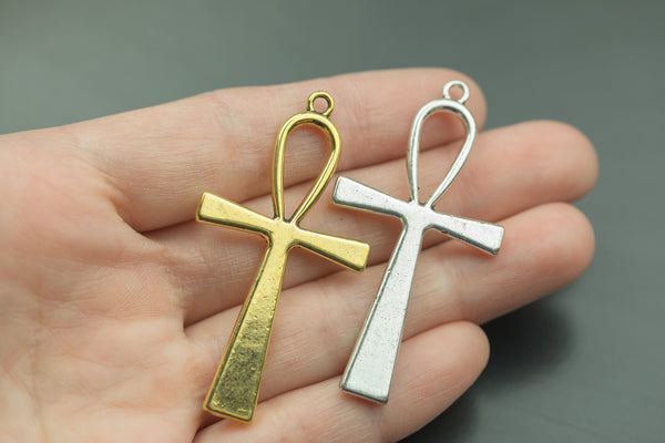 3 Ankh Cross Pewter Charms 28x56mm 1441-12911