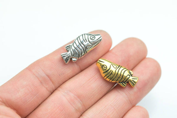 4 Fish PEWTER BEADS 10x24mm- 48-8077