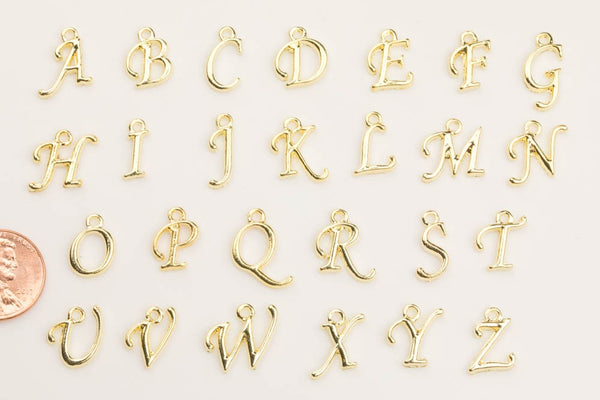 Letters Charms Alphabet Charms Gold - Approx 10x15mm / Half Inch