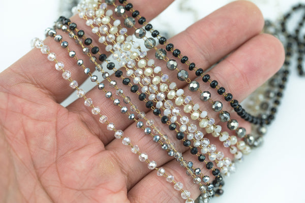Clear Crystal Rosary Chain by the yard. 2-3mm- Neutral Colors