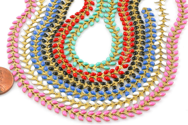 Sale!!! Feather Chevron Chain Brass in Enamel. By THE YARD / 3 feet