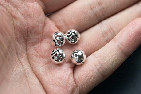OM OHM SIGN Yoga Hindu Beads 925 Bali Sterling silver - 8mm or 10mm 2 per order-s5
