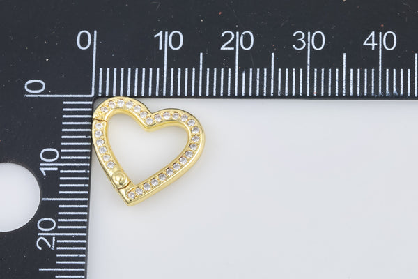 1 pc 15mm Heart Gold Micro Pave Spring Buckle Metal Snap Clasp Spring gate ring, Trigger Round Ring, Snap Clasp Hook for Jewelry Supply
