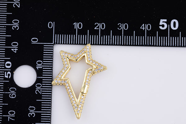 1 pc 20x32mm Star Gold Micro Pave Spring Buckle Metal Snap Clasp Spring gate ring, Trigger Round Ring, Push Snap Hook for Jewelry Fashion