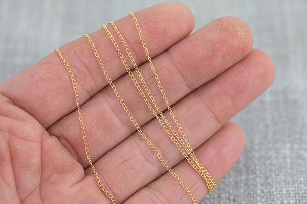 1.3mm Curb Gold-filled Chain by the foot or 10 feet-- Flat Chain Permanent Jewelry Chain