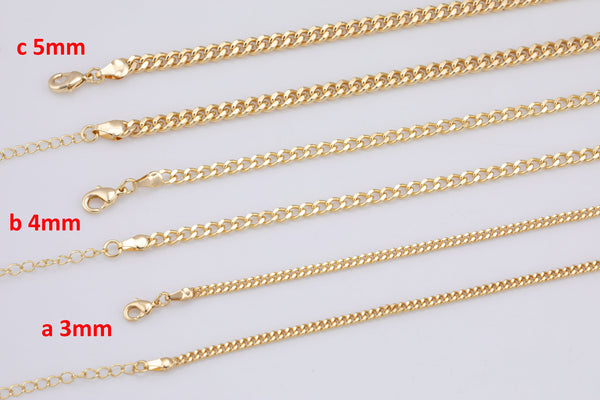 16" 18" 18K Gold plated Cuban Curb Chain Necklace PVD Ion Plated Brass Necklaces