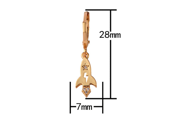 2 pc 18kt Gold Rocket Hoop Dangle Earring, Gold Spike Earring, Small Dangle Earring, Micro Pave Earring, Dangle Earring Charm- 7x28mm