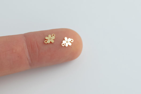 2 pcs 14K Gold Filled Connectors Cherry Blossom Connectors 14K GF Sterling Silver Flower Link Bracelet Sakura Link Permanent Jewelry Supply