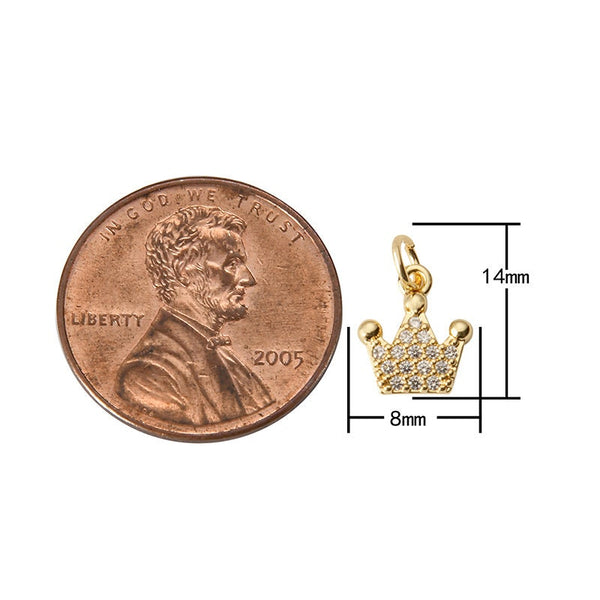 2 pcs 18K Gold Mini Crown Cubic Zirconia Bracelet Necklace Pendant Earring Charm Gift for Jewelry Making 8x14mm- 2 pcs per order
