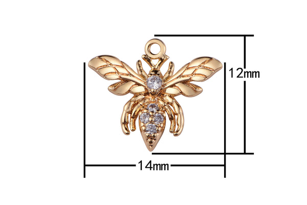 2pc 18kt Gold Bee Charm Gold Honeybee Pendant Queen Pendant-12x14mm- 2 pcs per order