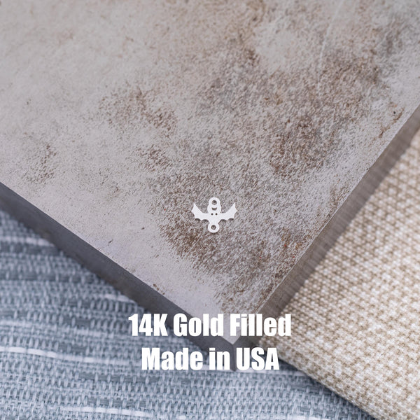Our products are meticulously crafted from scratch, designed, and manufactured in our studio located in Houston, Texas. We exclusively utilize double-clad 14 karat gold filled sourced from the USA, ensuring superior quality. We do not need to plate our items afterwards since we utilize state-of-the-art quarter-million dollar machinery that will not damage the plate like regular lasers will, ensuring exceptional durability and longevity. Typically, our production timeline spans 4-7 business days. For custom or wholesale inquiries, please don't hesitate to reach out to us. We're more than happy to assist you.
