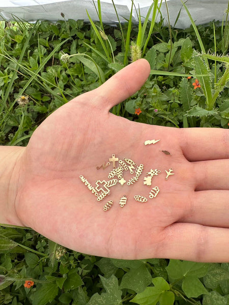 Our products are meticulously crafted from scratch, designed, and manufactured in our studio located in Houston, Texas. We exclusively utilize double-clad 14 karat gold filled sourced from the USA, ensuring superior quality. We do not need to plate our items afterwards since we utilize state-of-the-art quarter-million dollar machinery that will not damage the plate like regular lasers will, ensuring exceptional durability and longevity. Typically, our production timeline spans 4-7 business days. For custom or wholesale inquiries, please don't hesitate to reach out to us. We're more than happy to assist you.