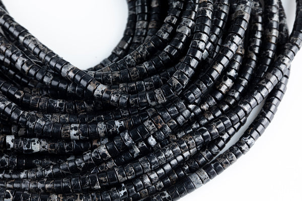 Black Sediment Jasper Heishi Discs Beads 2x4mm 3x6mm 15.5" Strand