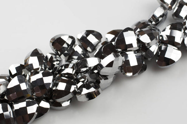 Briolette Teardrop Crystal- Medium and Large Silver-Full 15 inch strand- Platinum Silver
