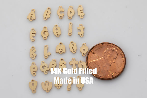 Bubble Letter Connectors 14K Gold Filled Made in USA - 8mm Alphabet Connector for Bracelet - Initial Charm Disk Permanent Jewelry Supplies