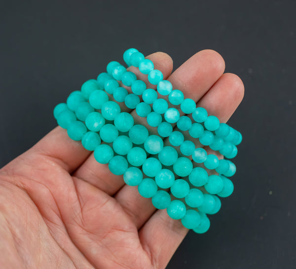 Chrysoprase Jade Bracelet Matte Round Size 6mm and 8mm Handmade In USA Natural Gemstone Crystal Bracelets Handmade Jewelry - approx. 7"